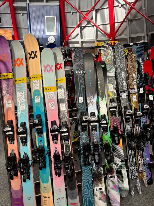 当日は、レーシングモデル、DEMOモデルやフリーライドスキーのトップブランドの最新モデルが一堂に集結。