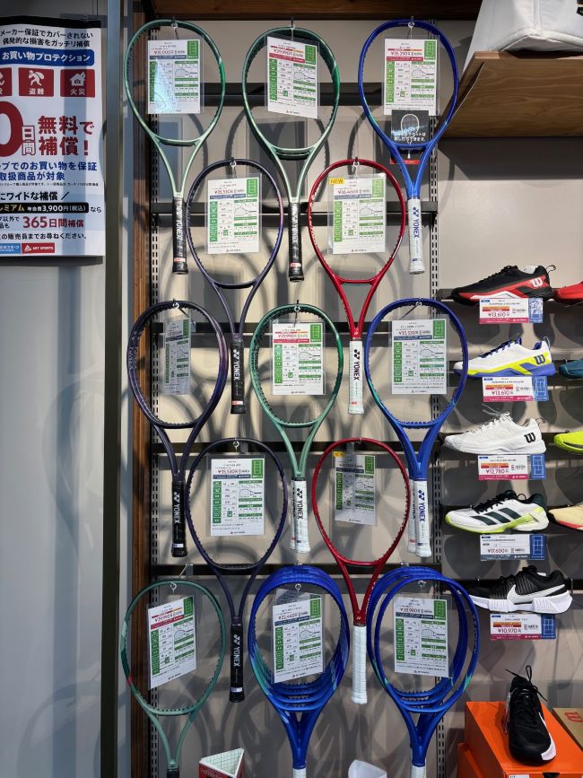 VCOREはスピン性能を求めてられている方にオススメなラケットですので、ご興味ご関心のある方は是非、お手に取ってみて下さい。試打ラケットもございます。ご来店お待ちしております。