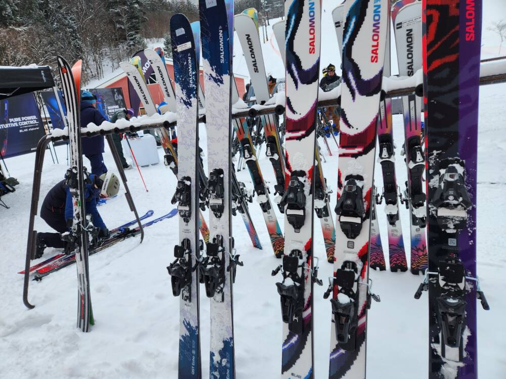 野沢会場ではバックカントリーや、幅広のファットスキーも多くございます。
