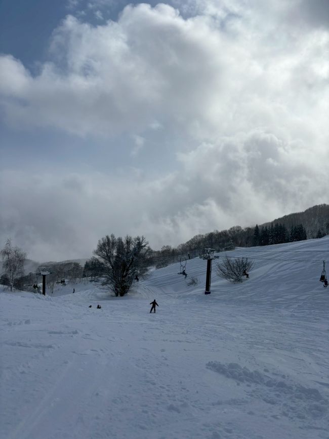 この日は天気が優れず、雪も常に降っていたためパウダースノーでした。