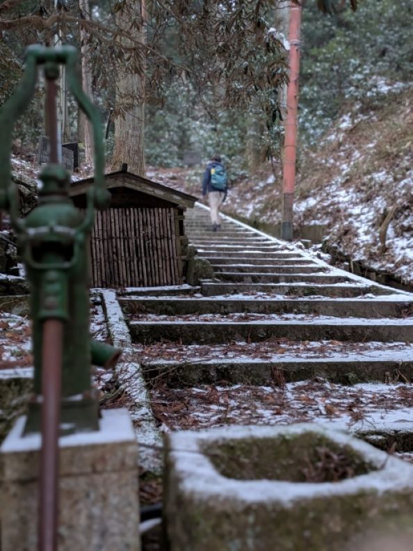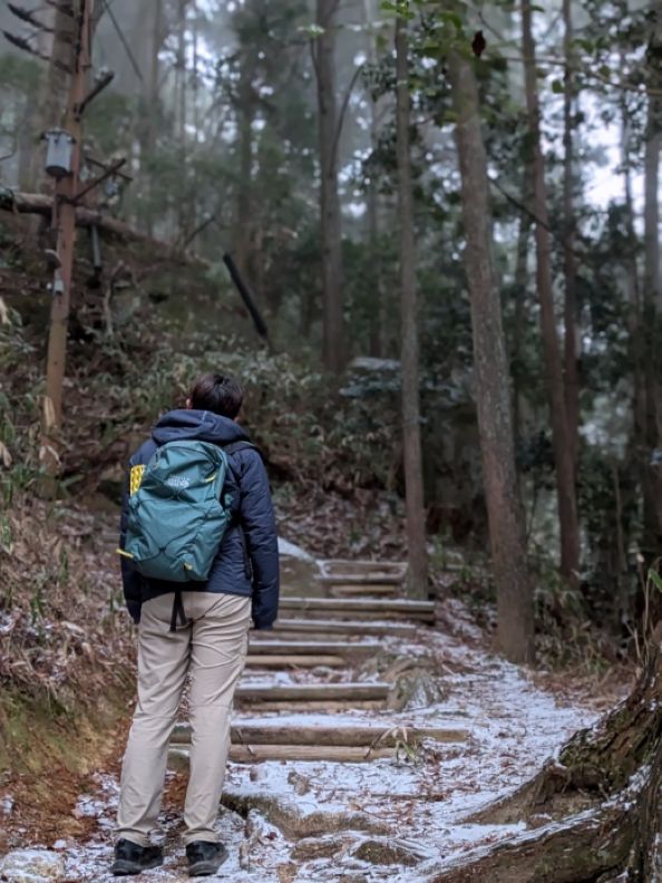 雪山登山の代表的な道具を使っての本格登山もいいですが、もう少し手軽に!Lightに!スノーハイキングを楽しもうと滋賀の里山「飯道山」に当店スタッフと登ってきました🥾