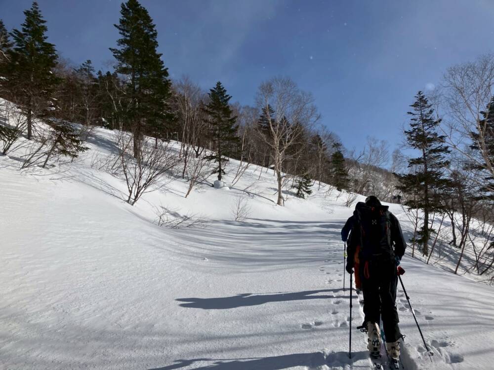 鵯の北斜面は、日射の影響が少なくパウダーが残っていることが多い印象。