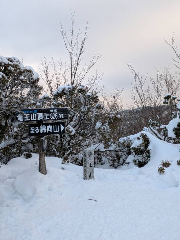 スパイクの歯をしっかり効かせて、最初のピーク「竜王山(826.8m)」に到着🚩