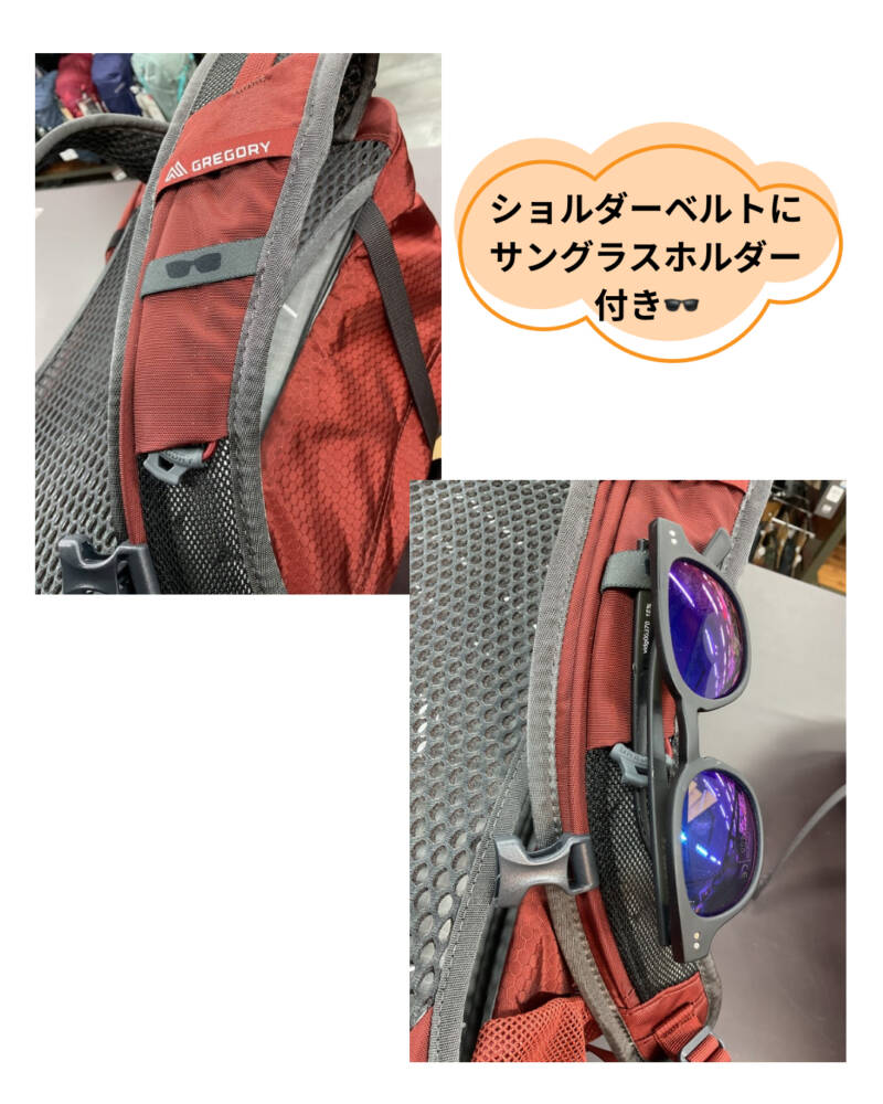 さらに、左のショルダーベルトにはサングラスホルダーまで付いてるんです!