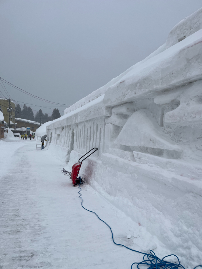 下山後、『月山志津温泉雪灯籠の灯り』のイベント準備をしている様子を少しだけ見学🙌