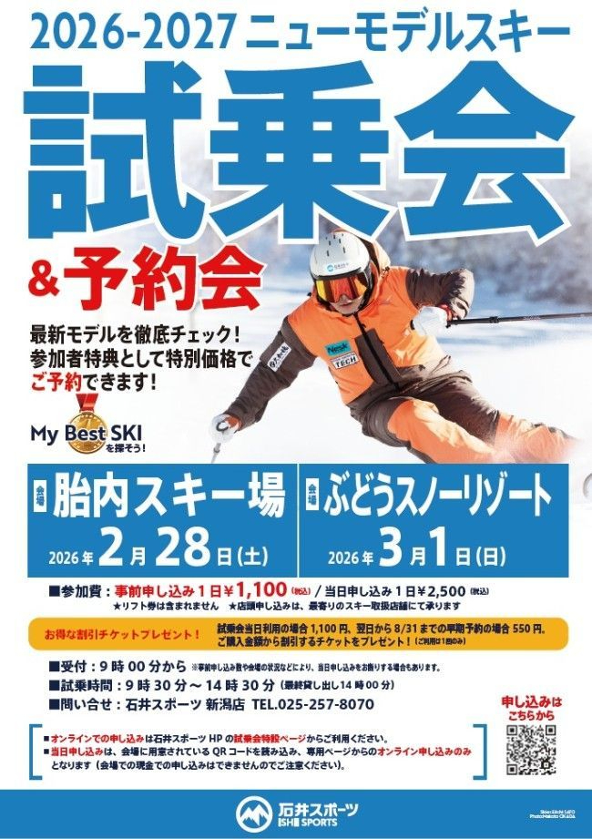 2会場で『2026-2027 NEW MODEL SKI 試乗会&予約会』を開催致します🎿