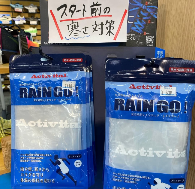 スタート前の保温にレインポンチョ