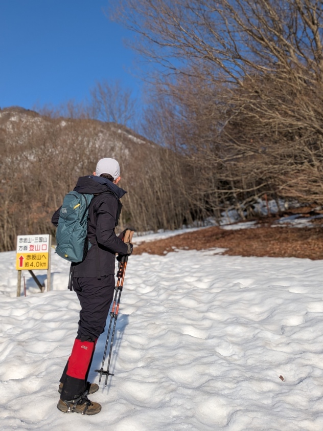 赤坂山BLUE☀と純白の足下❄に感動し、山頂目指しておのずと早足に🏃♀️