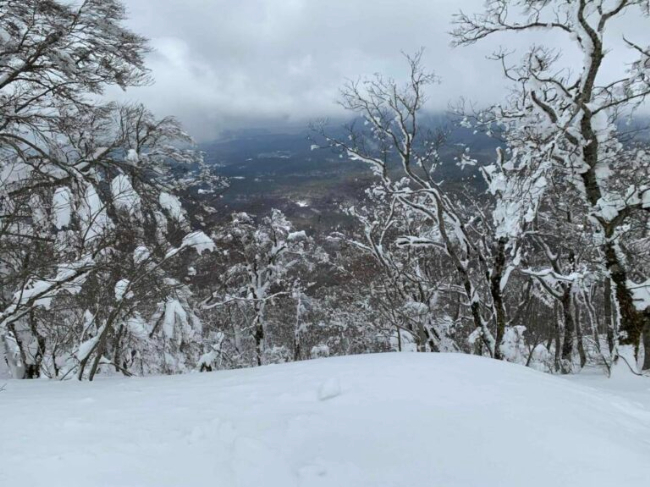 大山は人気の山域なので、平日でもトレースが十分ついています。登山口から1時間少し登れば、だんだん下の景色が見えてきます。