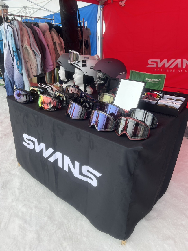 各会場では、スキー板・ブーツ・スキーウェア・ゴーグル・ヘルメット等、