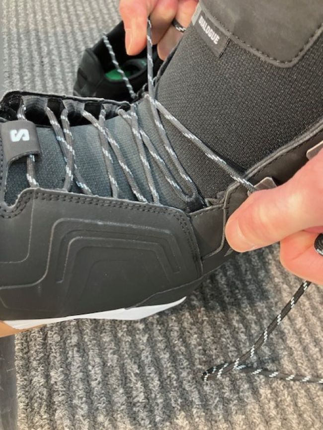紐のブーツは締め訳がとにかく容易く、シーズン初めから滑っている間の