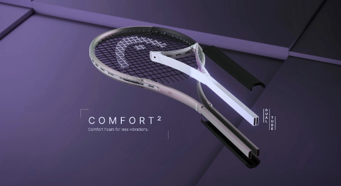 従来のラケットが1本のチューブ構造であるのに対し、SQUAREDは2層構造を採用しています。