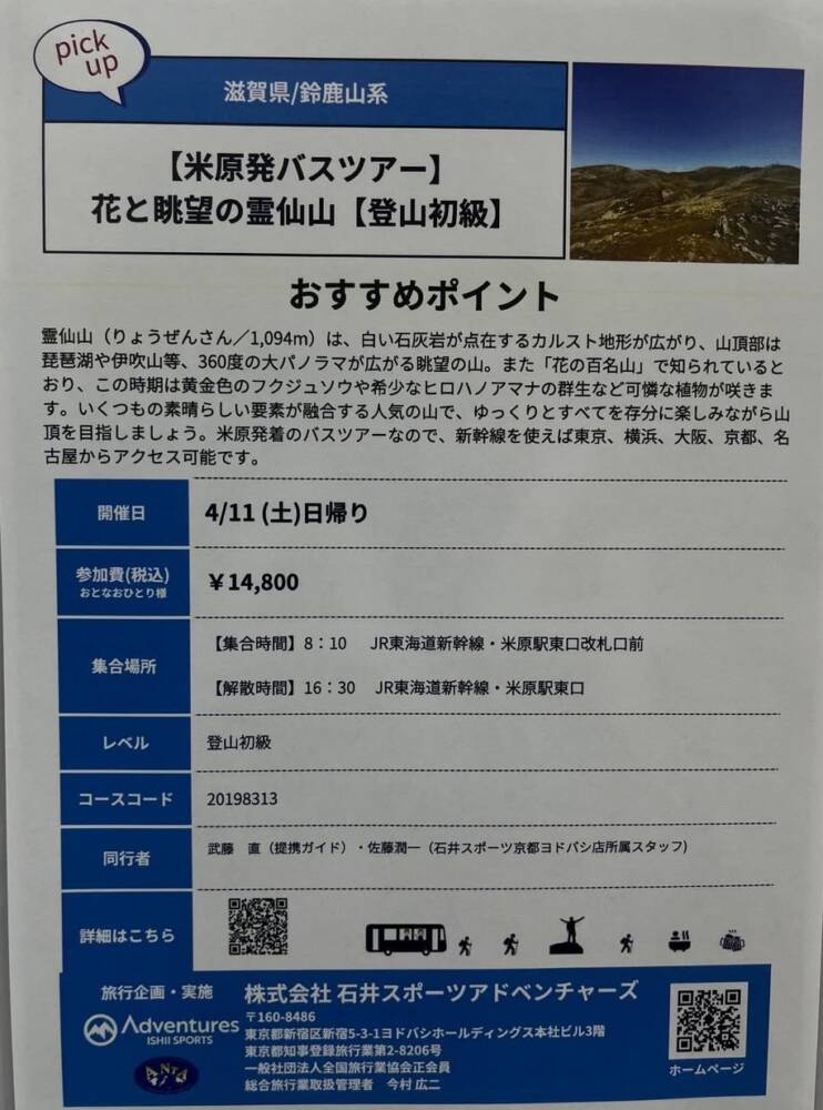 春の登山ツアー開催🎉滋賀県・霊仙山🌼【京都ヨドバシ店】