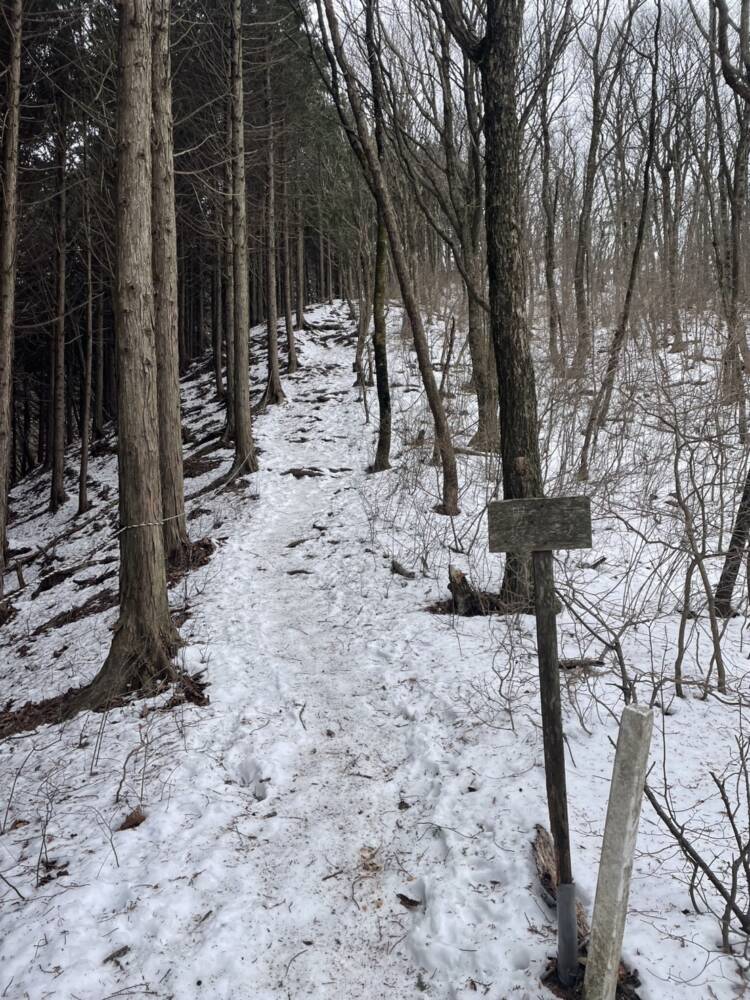 登山口付近には雪はそれほど無いのですが、少し登ったところから北面には雪が残っている状態です。