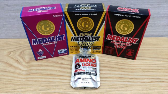 メダリスト ブドウ味、スーパーメダリスト9000、アミノダイレクト5500、アミノリキッド、これらをまとめて試せる機会は中々ありません。アクティビティを1段ステップアップしたい、日々の生活をより充実させたい、そんな熱意を後押ししてくれる頼もしいアイテムです。