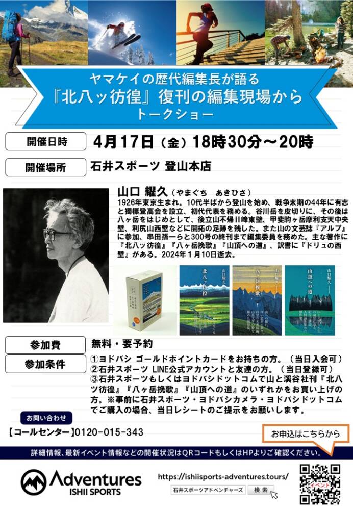 【無料イベント】ヤマケイの歴代編集長が語る『八ヶ岳を愛した山口耀久とは』 石井スポーツアドベンチャーズ