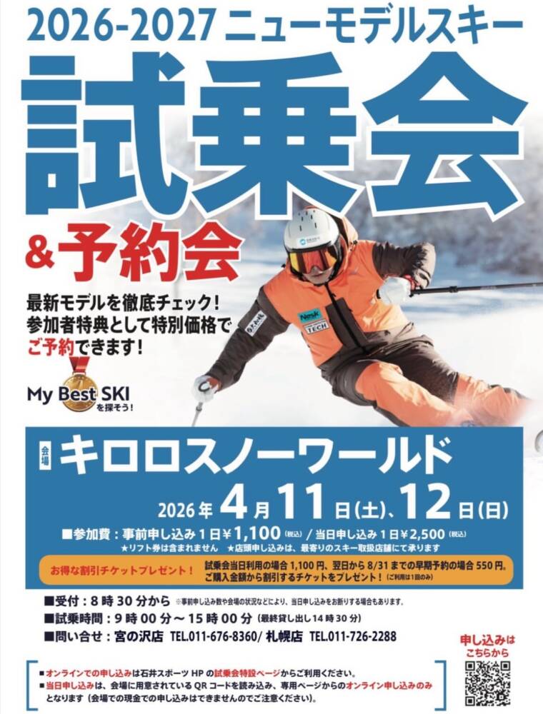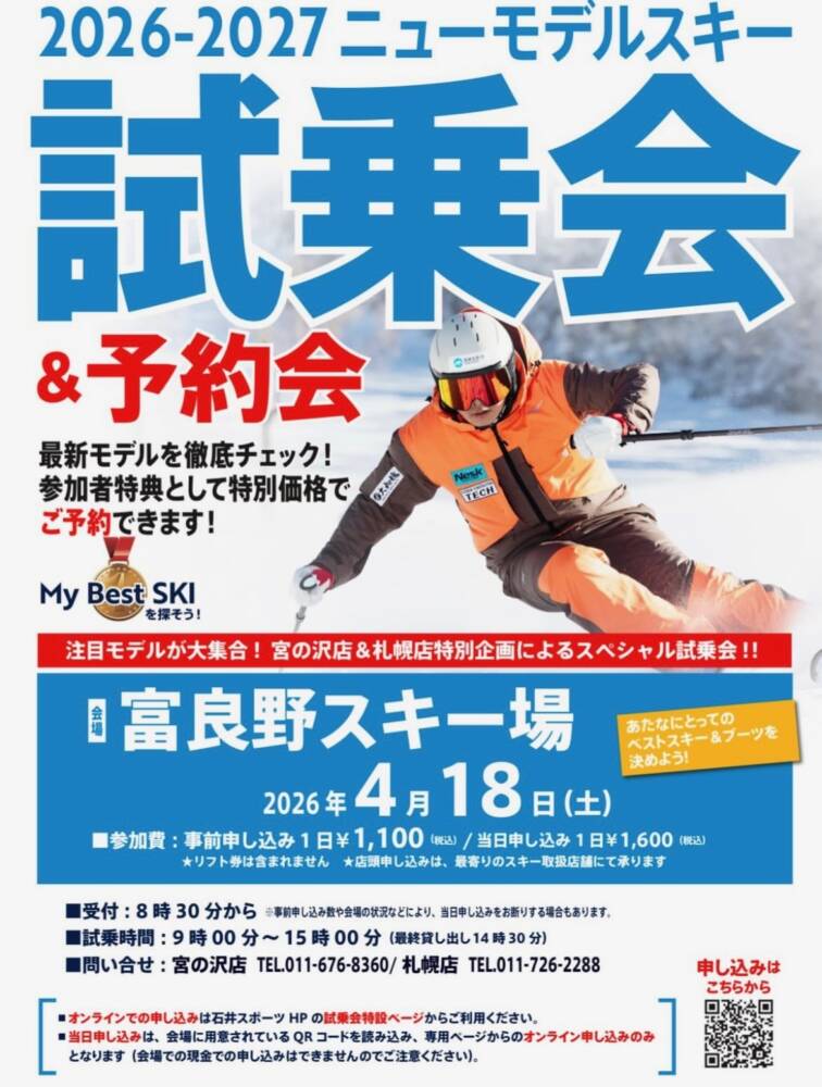 昨日は、富良野スキー場にて『2026-2027SKI NEW MODEL試乗会 富良野会場』のビラを配布しに行きました〜‼️