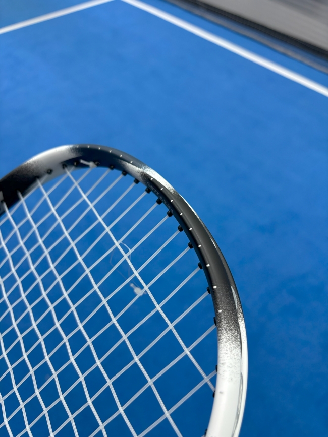 小ネタですが、ラケット上部の点々模様が削れて減ってきたら買い替えの目安です。