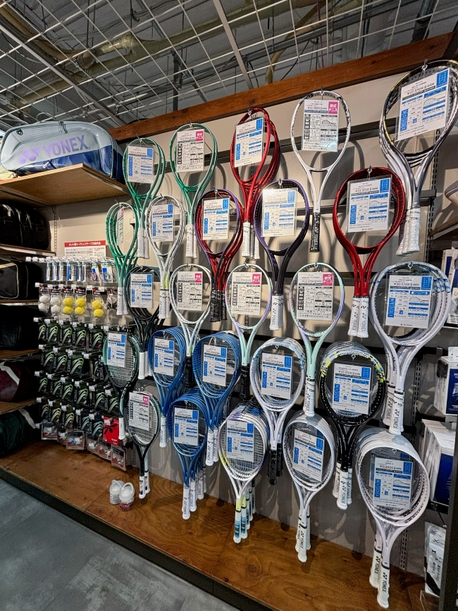 ラケットの試打室を完備していますので、ラケット選びでお悩みの方、テニスのストリング張り替えでお悩みの方はぜひ、当店テニスコーナーにお立ち寄りください!!