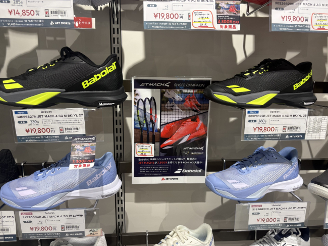 バボラPUREシリーズ+ジェットマッハ4シューズ購入いただいた方限定で今なら3,300円OFFになるキャンペーンを実施中!
