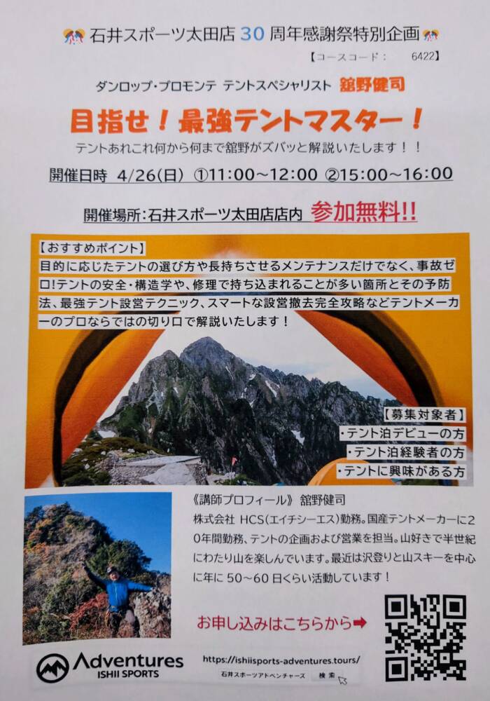 | 開催場所 | 石井スポーツ太田店 店内 |
