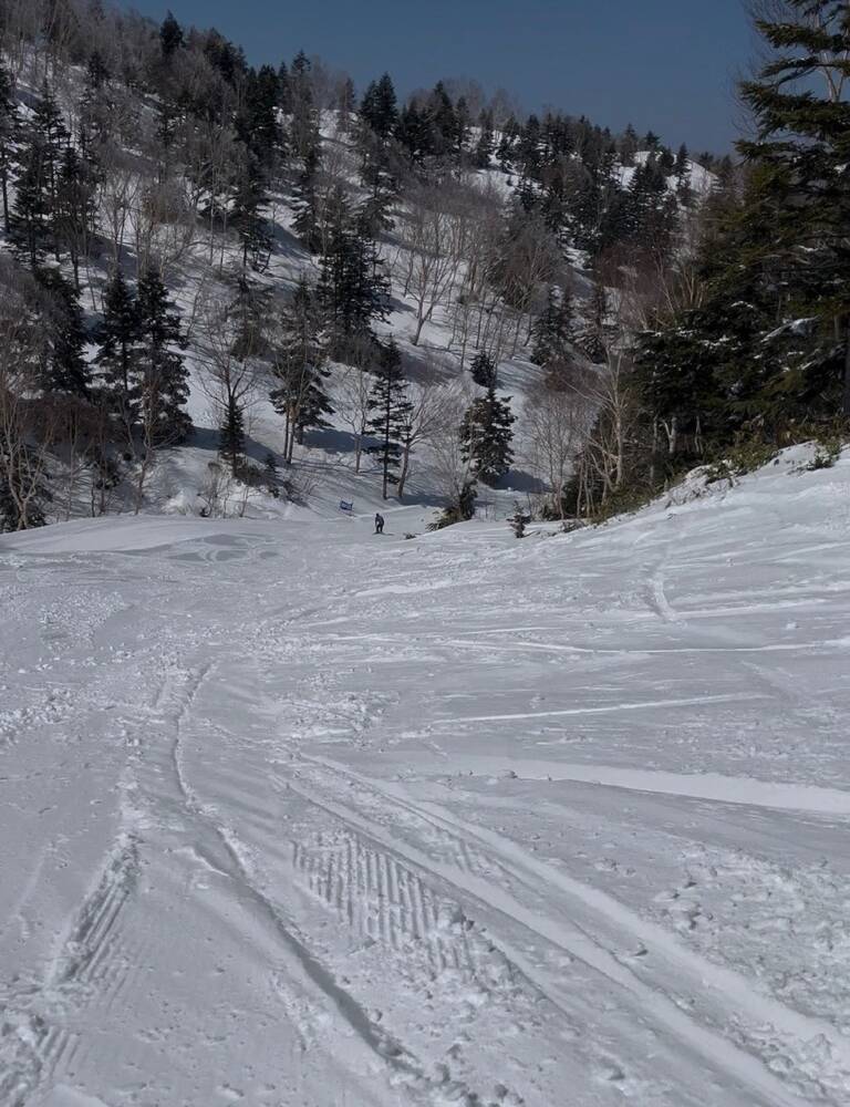 ところが着いてみると思ったよりも雪質は良好。滑ってみてもカチカチでもベチャベチャでもないちょうどいいザラメ雪。結構楽しむことが出来ました。