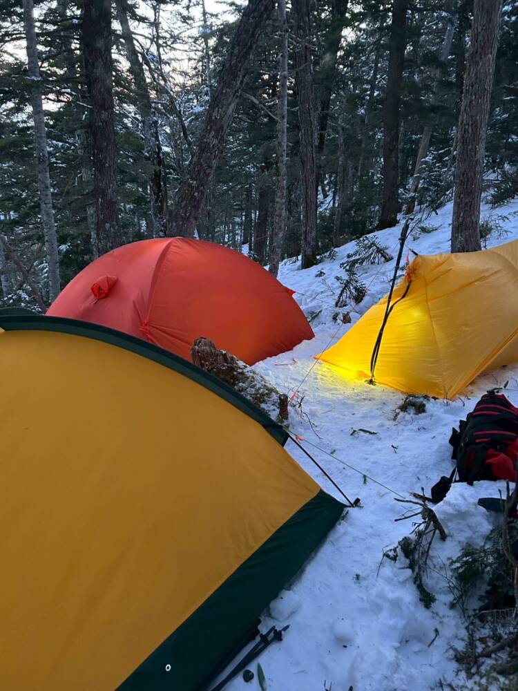 途中から少しずつ雪が出てきてテント設営地に着く頃には雪山の景観に変わっています⛄️