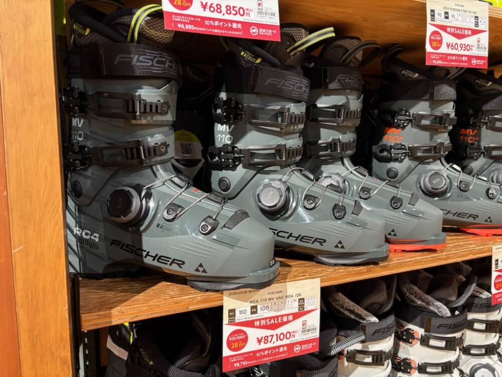 ただいまこちらのモデルはセール中ですので、ブーツを履いた時に悩みがある方、買い替えご検討中の方はぜひスキーコーナーまでお越しください!
