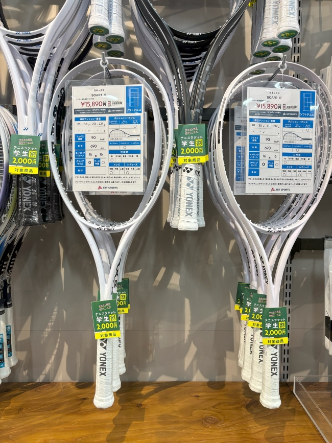 また、今なら2000円引きの学割がございますのでお得にお求めいただけます。(学生証の提示と当店でのストリング加工が条件です)