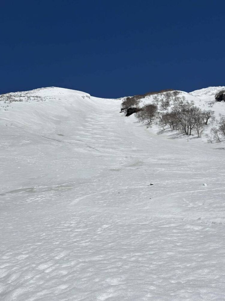 入口までは雪がまだゆるんでおらずガリガリでしたが、沢中はしっかり緩んでいて気持ちのいいザラメ雪を滑ることができました✨