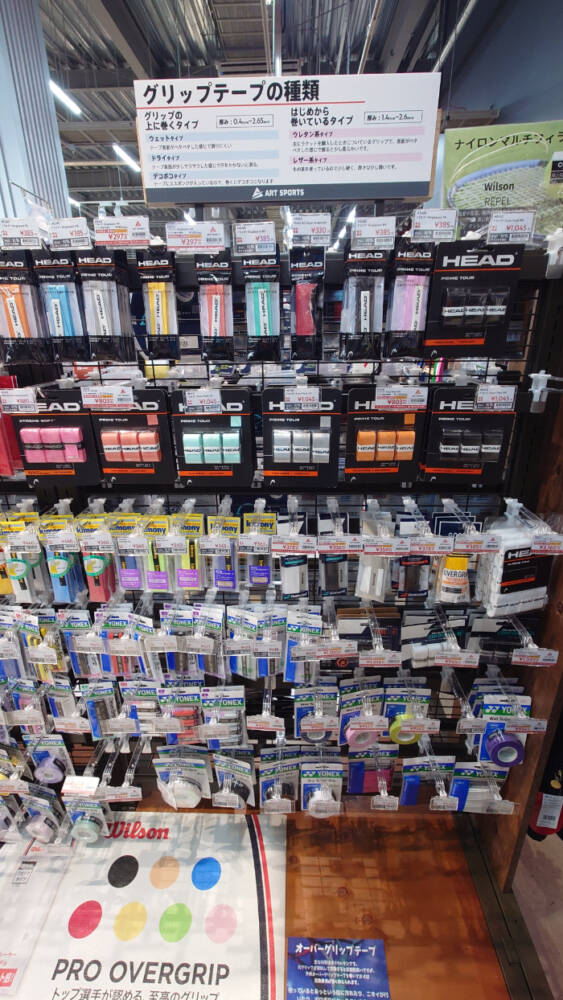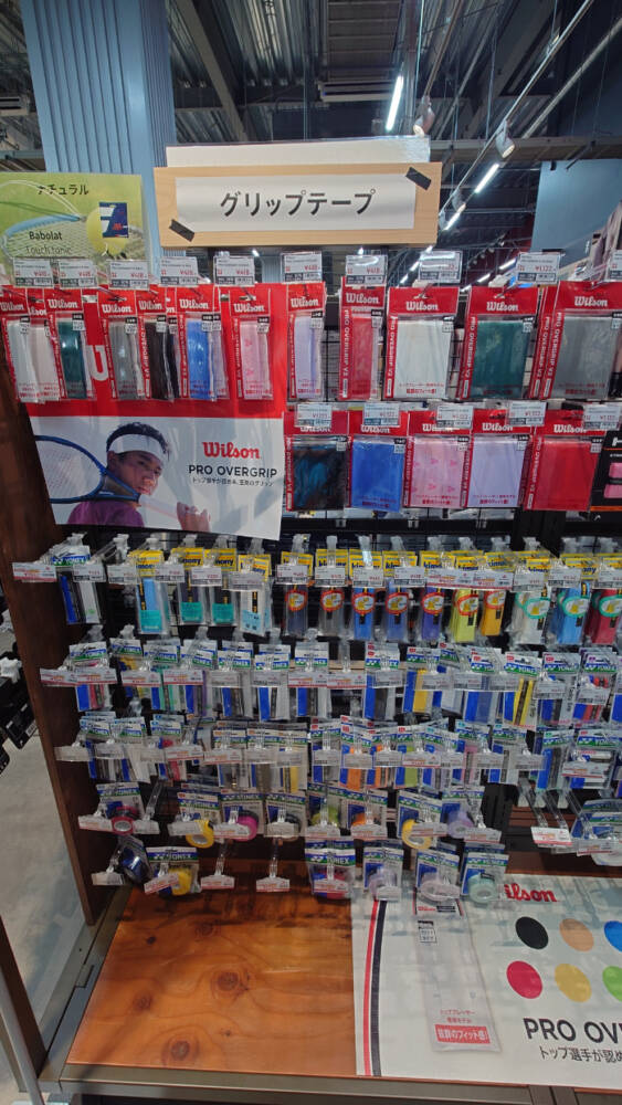 石井スポーツ高崎店では様々なテニス用品を取り揃えております。オーバーグリップテープの巻き替えは330円、リプレイスメントグリップテープの巻き替えは550円で承っております。