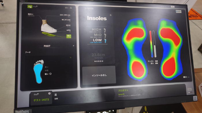 どなたでも無料でご体感でき、今後の靴選びの参考に出来るのと、ご自身の足の状態でご不明点があれば、その場でスタッフがご説明・お答えすることが出来ます。