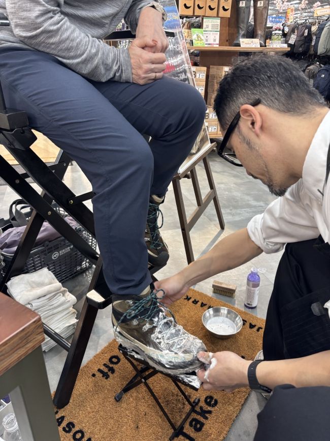 シューズからブーツまで幅広くクリーニングさせていただきましたが、綺麗になっていく靴を見ているお客様の笑顔が印象的なイベントとなりました。