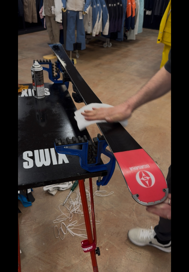 1日使用したスキーにSWIXのリムーバースプレーをさっと吹きかけて、、、