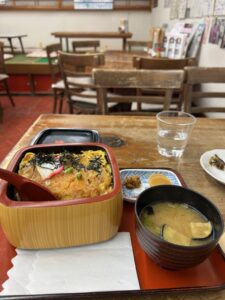 13:37 途中通った商店街でかつ丼を食べます。