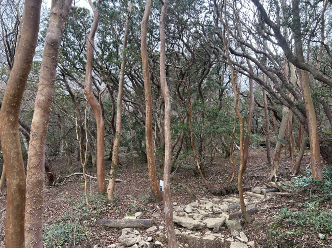 伊豆の山は植生が独特で、ぐねぐねと捻れた樹木と苔が生い茂り、不思議な景観。曇り空と相まってなんだか異世界風。