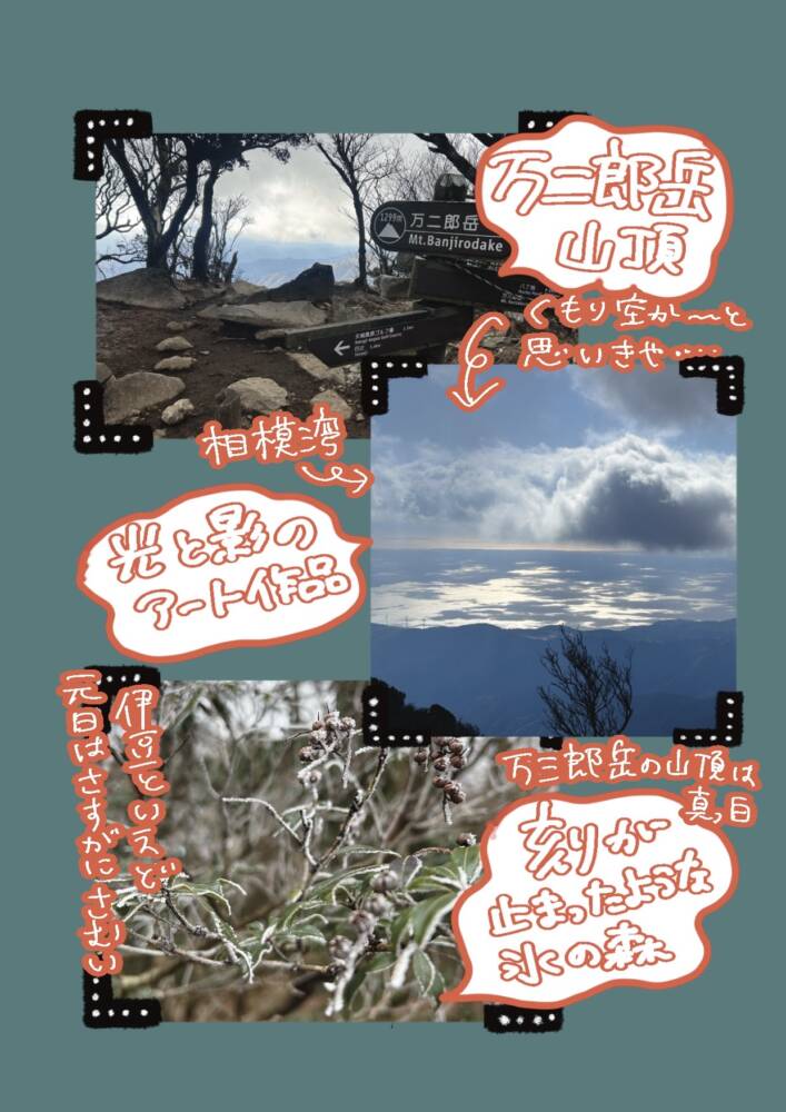 冬にクライミングで城ヶ崎や城山に行ったことがあったので、伊豆って年中あったかいと思ってたけど、山の上は寒かったです。そりゃそうです。