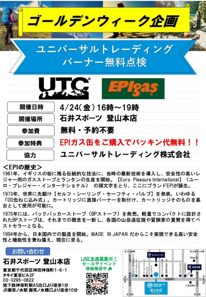 4月24日金曜日16時~19時 登山本店にて