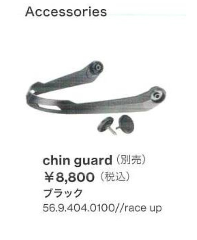 また、このモデルは別売りのチンガードの取り付けが可能で、