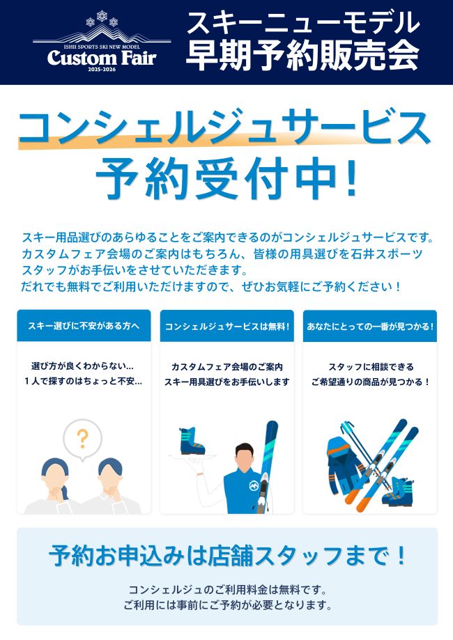 石井スポーツスタッフがマンツーマンでご案内。お客様のお求めのアイテムをお探しするお手伝いをいたします。※要事前予約となります