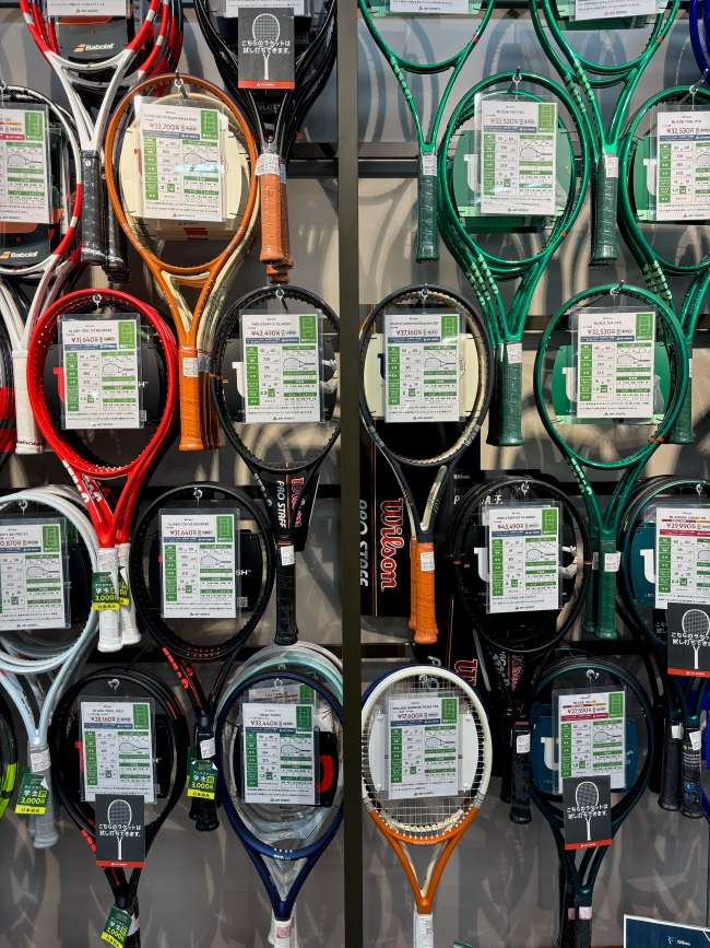 ラケットの試打室を完備していますので、ラケット選びでお悩みの方、テニスのストリング張り替えでお悩みの方はぜひ、当店テニスコーナーにお立ち寄りください!!