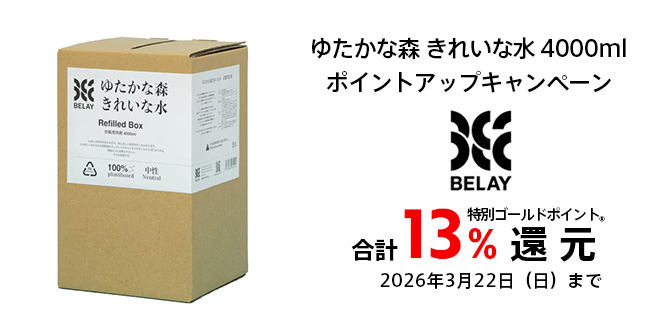 期間中に対象のビレイの衣類用洗剤 ゆたかな森 きれいな水4000mlをご購入で特別ゴールドポイント13%還元いたします。