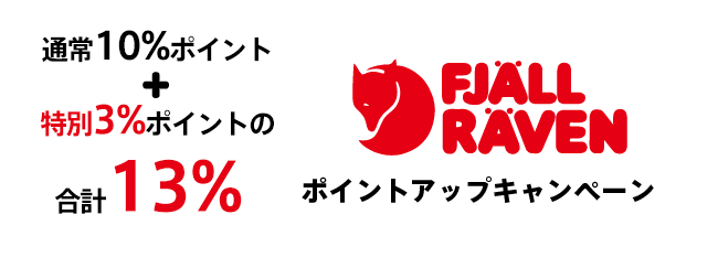 対象期間中、アートスポーツ本店にてフェールラーベンのアイテムのポイント還元率が10%+ボーナスポイント3%の13%還元となります。