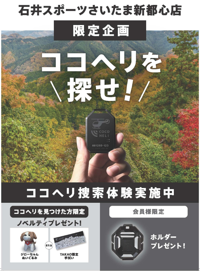 ココヘリ探索体験にご参加いただき、ココヘリを見つけたお客様限定で、ノベルティをプレゼントいたします。