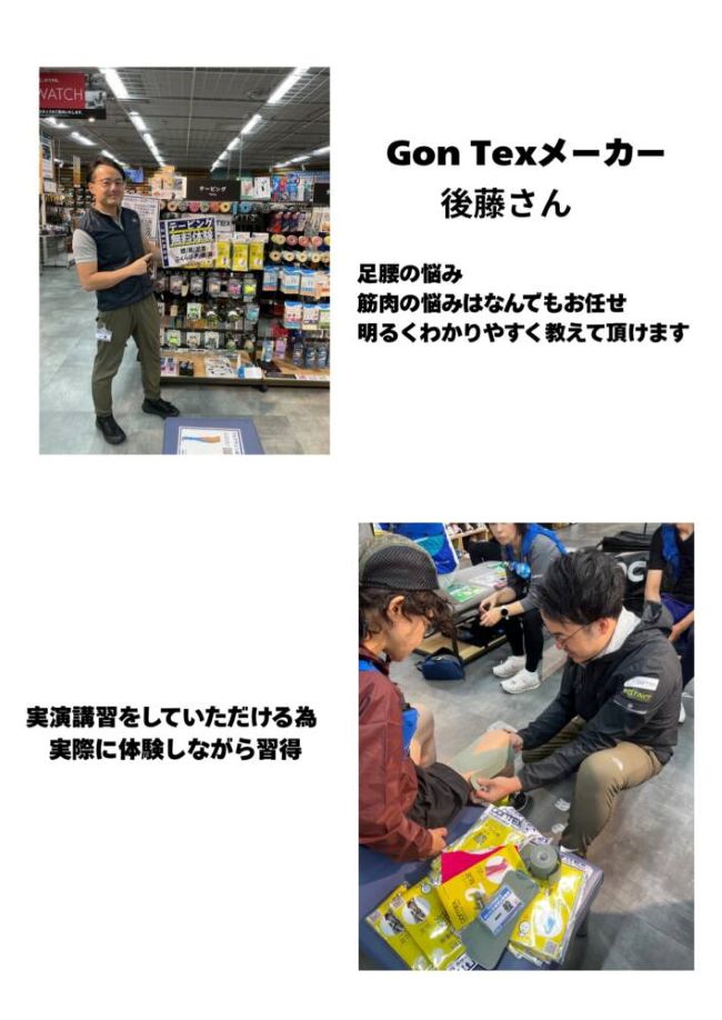 不安箇所のテーピングによるサポートがあると完走や目標タイムの達成に役立つこと間違いなし。専門スタッフから商品について詳しい内容を聞けます。