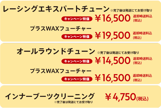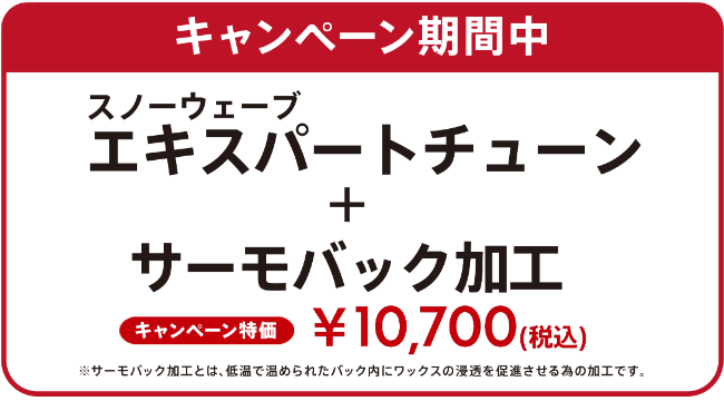 対象店舗でのスキー チューンナップがお得なキャンペーン価格で受けられるお得なキャンペーンとなっています。