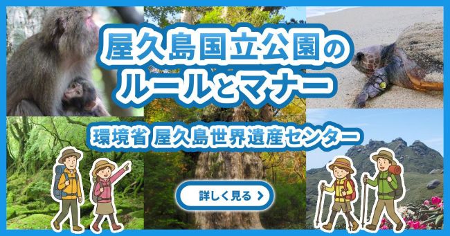 屋久島に行く前に早い段階から自然環境の大切さを理解し、必要な準備を整えていただく事が重要であるとの事から、知っていただきたいルールやマナーについてご案内します。