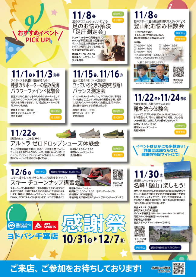 石井スポーツ ヨドバシ千葉店で以下の日程で感謝祭を開催します。