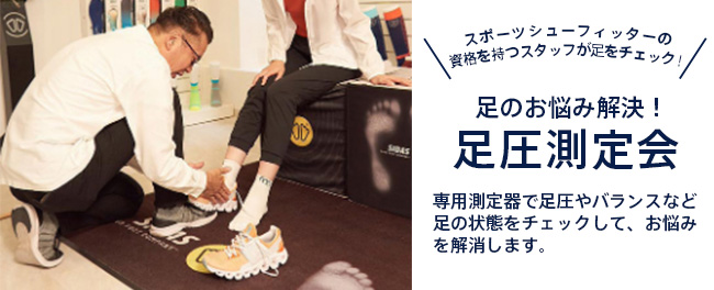 シダスの足圧測定器で石井スポーツスタッフが足裏の圧力やバランスをチェック、足のお悩み相談承ります。